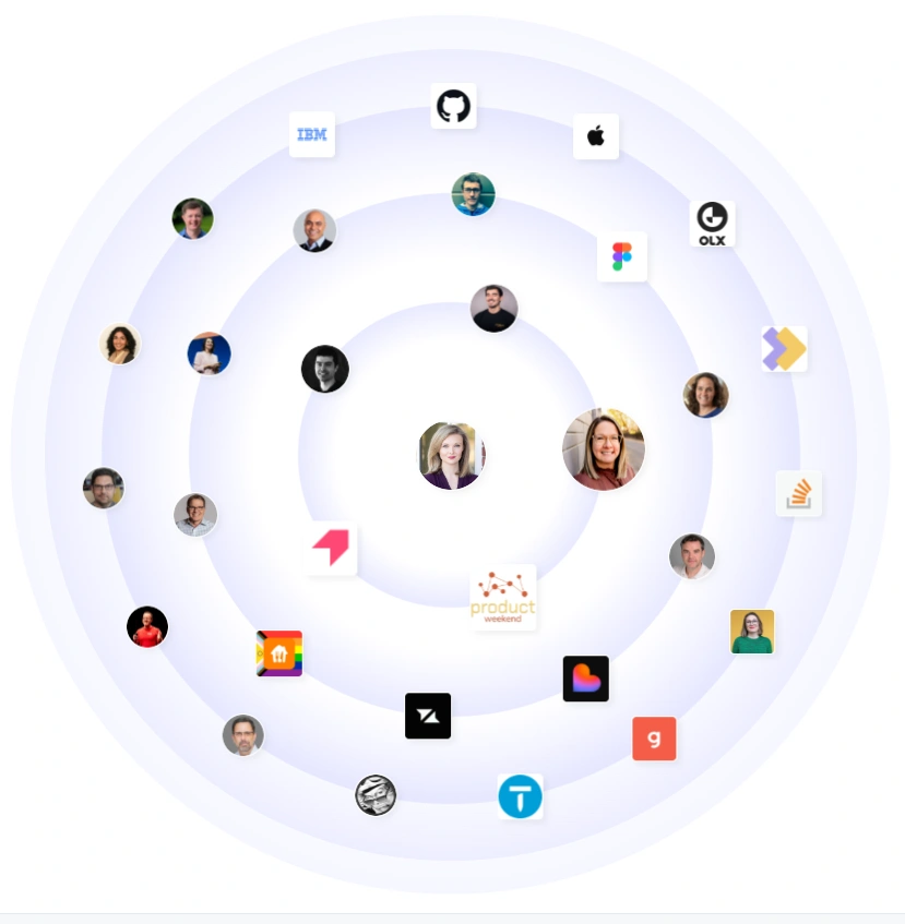 Her orbit includes leaders and teams from Apple, IBM, GitHub, Figma, OLX, and more, plus product communities like Product Weekend and Stack Overflow. You’ll also see academics and operators who test ideas in the wild. The mix spans design, engineering, GTM, and leadership. It gives her content instant credibility and reach across the product stack.