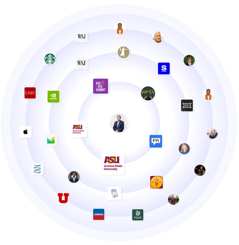 His orbit spans ASU and its colleges, ASU+GSV Summit, WSJ, and leaders across government and philanthropy. Tech and industry names show up often, including NVIDIA, Apple, and partners across advanced manufacturing and climate. Media voices and education innovators engage with his updates. The mix signals reach from campus to Capitol Hill to the boardrooms shaping the future of work.