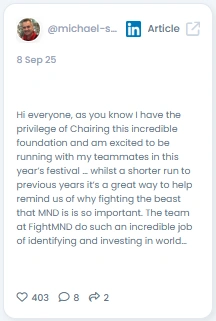 Michael champions workplace safety, mental health awareness, and community support. He celebrates safe work practices, thanks teams for looking out for one another, and normalizes conversations about mental health. Community posts highlight fundraising runs, local clubs, and grassroots projects. The throughline is simple: look after people, and results follow.