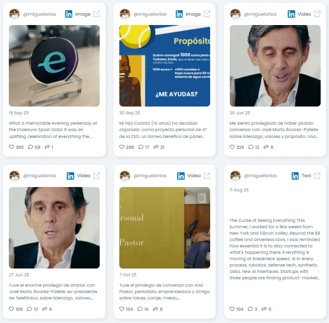 His network connects founders, corporate partners, and builders across Spain and beyond. You’ll find links to Kfund, Endeavor events, national business leaders, and regional ecosystem players. He also engages with media, fellow VCs, and high profile entrepreneurs. That mix gives him reach into both deal flow and public conversation.