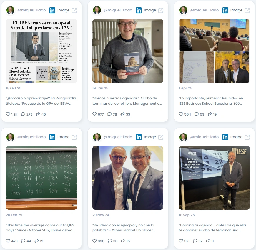Miquel Lladó is one of those voices you instantly trust. His content blends academic depth with real business experience, making leadership feel practical rather than abstract. He speaks to executives, students, and curious thinkers with the same clarity and warmth. His posts carry stories, numbers, and insights that stay with you long after you scroll past them.