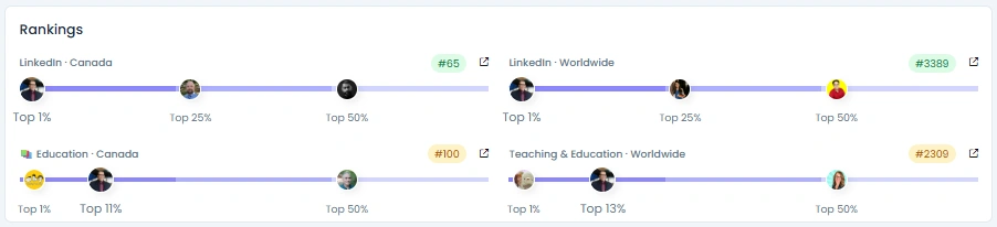 Influence Score is 6,388 pts. Followers grew from 23,436 to 32,732 over more than three years with a smooth, credible curve. Rankings place him in the Top 1% on LinkedIn in Canada and within the Top 11% in Education nationally. His posting rhythm is steady, and comment threads feature leaders with lived experience in academia and health.