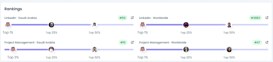 Mohammed’s audience has grown steadily from 40,069 to over 49,065 followers, reflecting consistent organic engagement over more than two years. His Influence Score of 7,289 points ranks him in the Top 1% on LinkedIn Saudi Arabia and Top 3% globally in Project Management. With hundreds of likes and comments per post, his engagement signals respect and recognition from peers, employees, and national stakeholders alike.