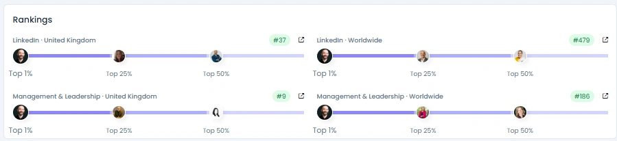 His circle spans senior leaders across tech, finance, and professional services. You’ll see founders, COOs, VPs of People, and executive coaches engaging with his posts. He is ranked in the top 1% on LinkedIn in the UK for Management and Leadership, which signals reach into decision-making audiences. When he speaks, practitioners with budgets and headcount are in the room.