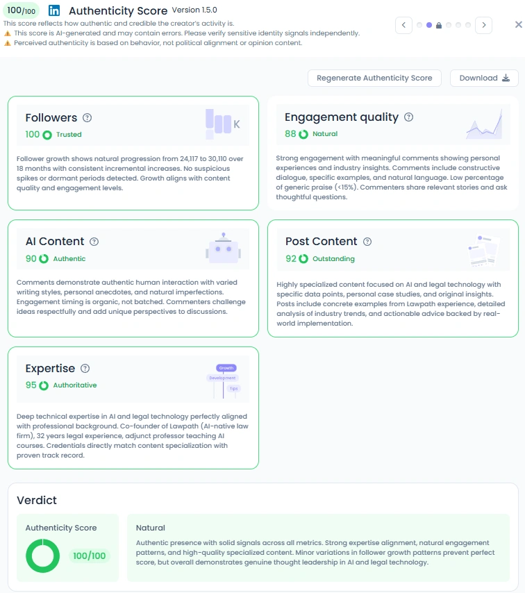 Nick’s Favikon Authenticity Score of 100/100 reflects the natural, conversational tone that defines his content. His Post Content score of 92 shows how he masterfully blends case studies, humor, and personal experiences to keep his message fresh and relatable. Comments under his posts often include genuine debate, personal anecdotes, and thoughtful engagement from industry peers. His authenticity lies in his willingness to laugh at the system while helping people navigate it. That balance between expertise and humility has made him one of the most trusted voices in his space.