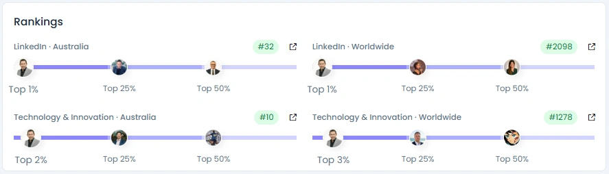 Nick holds an Influence Score of 7,009 points, ranking among the top 1% of creators in Australia and the top 3% globally in Technology and Innovation. His follower count has grown from 24,000 to over 30,000 in just 18 months, supported by a strong Engagement Quality score of 88. His posts regularly generate hundreds of comments and thousands of views, especially when tackling AI-related trends or sharing professional reflections. His growth is steady and organic, powered by an audience of professionals who trust his perspective.