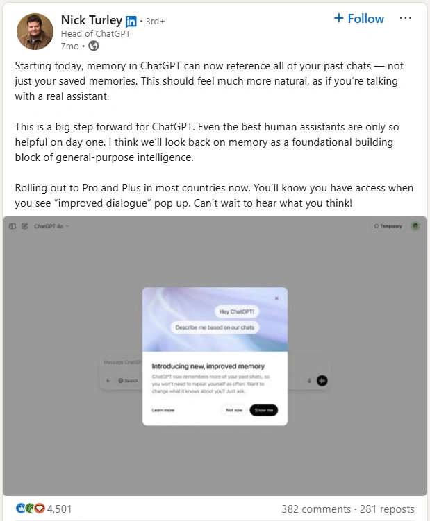 Nick Turley has become one of the most influential voices in AI today. As Head of ChatGPT, his posts bridge the gap between cutting-edge technology and everyday impact.