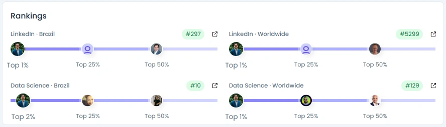 Nilton’s performance on LinkedIn shows consistent, organic growth. Over the past two years, his follower count increased from 25,650 to over 54,000, with no suspicious spikes or drops. His Influence Score of 4 and 7,513 Favikon points place him among the most influential voices in Data Science in Brazil. He ranks in the Top 1 percent of Data Science creators worldwide, and is #10 in Brazil.