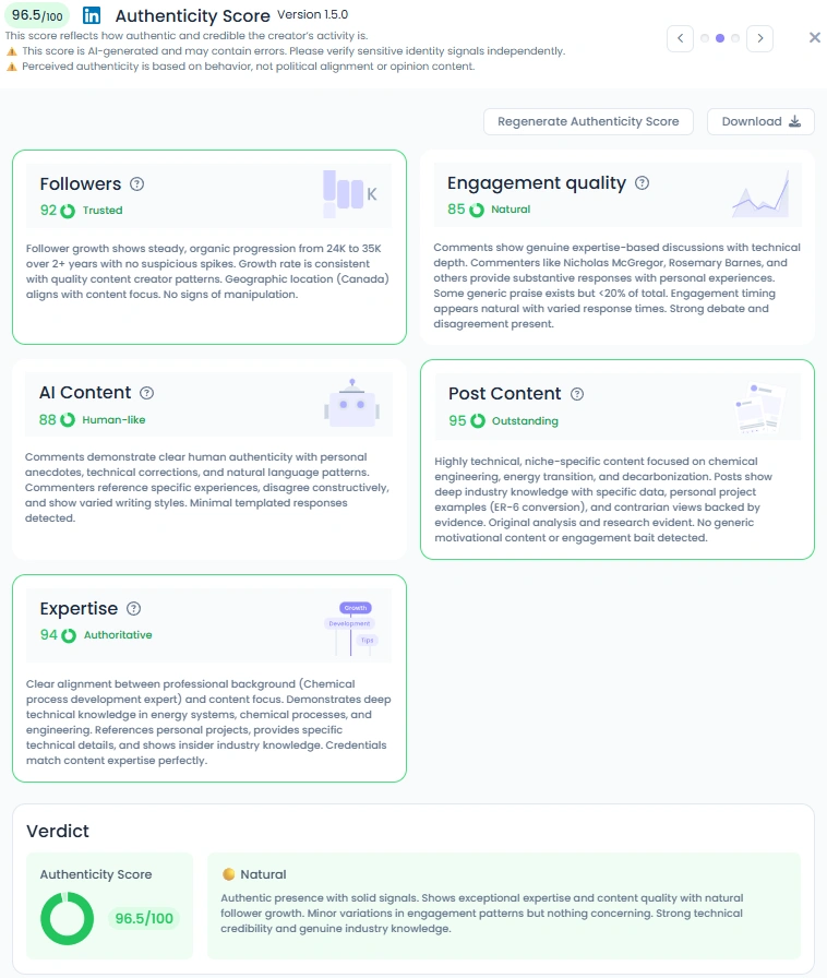 With an Favikon Authenticity Score of 96.5/100, Paul’s credibility comes from consistent engagement and technical integrity. His followers respond with genuine curiosity and respect, not empty praise. He encourages healthy debate, which keeps discussions dynamic and productive. His tone remains professional yet approachable, proving that expertise and openness can coexist. Paul’s ability to connect deeply with a highly educated audience reinforces his status as an authentic thought leader in engineering and sustainability.