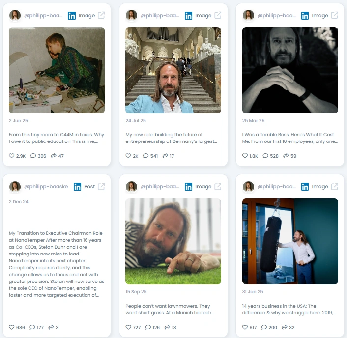 Philipp scores a perfect 100 for authenticity. His content reads like a real person sharing real experience. He posts candid photos, personal transitions, and long form reflections that spark thoughtful comments. Engagement patterns show professional dialogue, peer questions, and constructive pushback. That mix of vulnerability and expertise creates trust.
