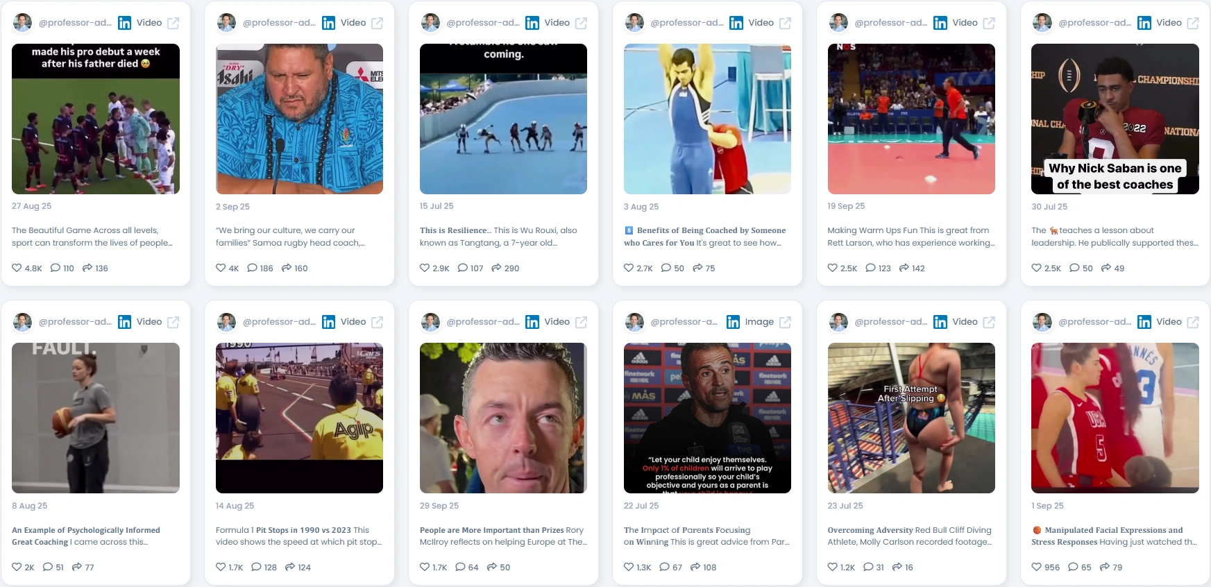 People connect with Adam because he blends science with stories. His posts spotlight real moments in sport, from the resilience of young athletes to lessons in leadership from legendary coaches. He makes complex psychological concepts simple and practical, often using video highlights or quotes to anchor his points. That mix of academic rigor and relatable delivery keeps his audience engaged and eager for more.