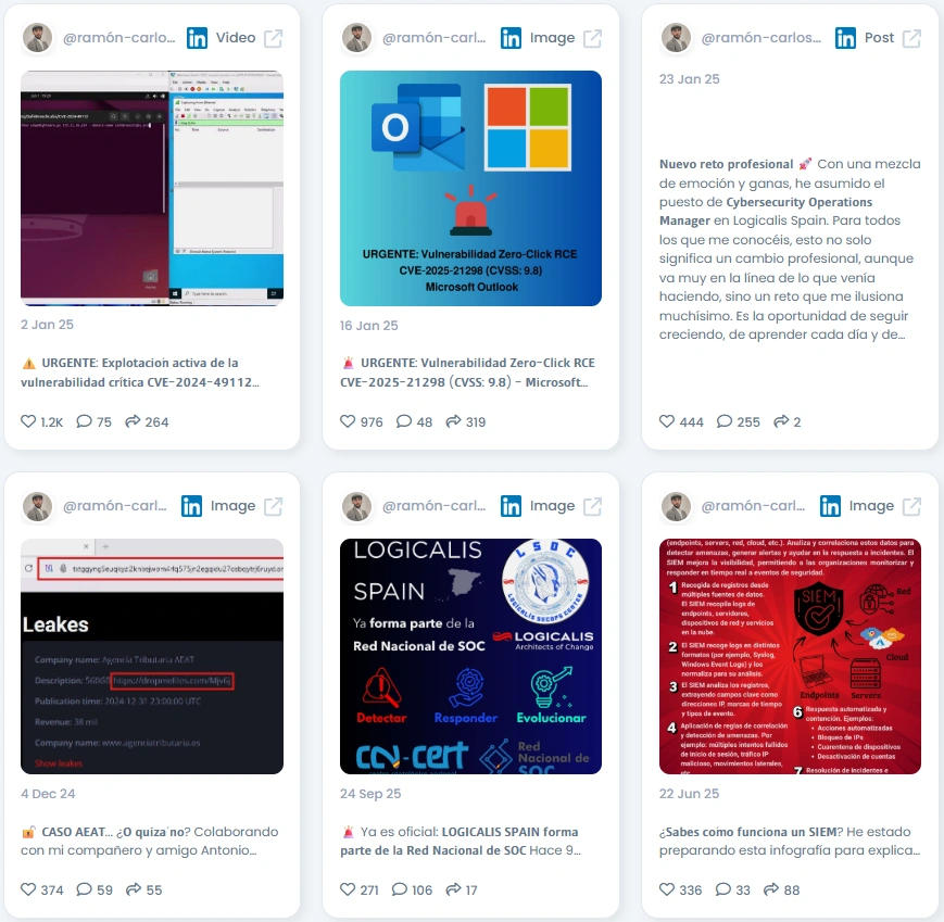Ramón Carlos Rico Gómez is one of Spain’s go-to voices in cybersecurity. With a clear, grounded approach, he turns technical jargon into real-world insights that both experts and businesses can understand. His posts are a mix of deep technical breakdowns, vulnerability alerts, and professional reflections that remind his audience that cybersecurity is about people as much as it is about systems.