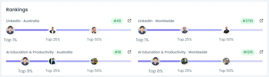 Raymond boasts a high Influence Score of 6,033 pts, marking him as a high-impact influencer. His follower base is 92 (Trusted), showing healthy, incremental growth from 16,317 to over 27,281 followers in two years. He is a prominent voice, ranking in the Top 1% on LinkedIn in Australia (#49). Furthermore, he is a global leader in his niche, ranking in the Top 8% in AI Education & Productivity Worldwide (#1215). These numbers highlight his authority and the quality of his specialization.