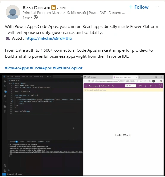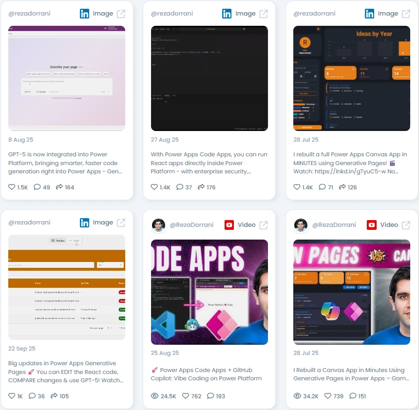 Reza works in the Microsoft ecosystem daily. His circle includes product leads, MVPs, community moderators, and partner builders. You see GitHub and Azure voices in the comments trading tips. The network gives his tutorials reach across enterprises, agencies, and citizen dev communities.