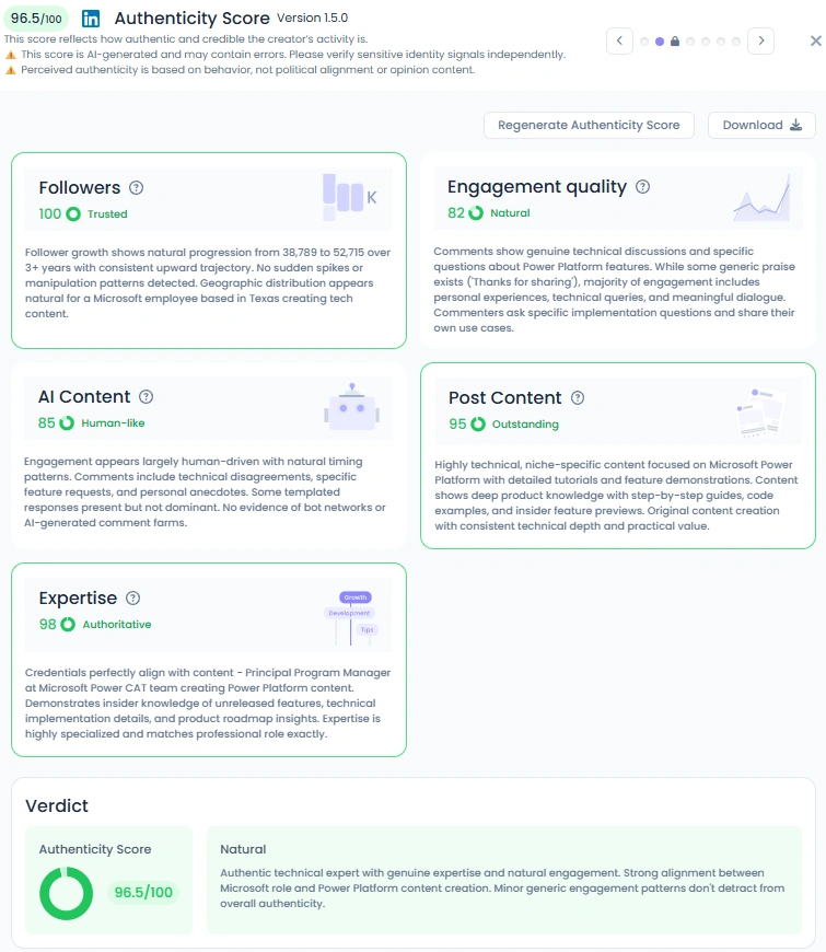 Favikon rates him 96.5/100 on authenticity. Post content scores are outstanding thanks to original walkthroughs and insider feature previews. Discussion threads show real technical debate and implementation notes. No fluff, just useful guidance.