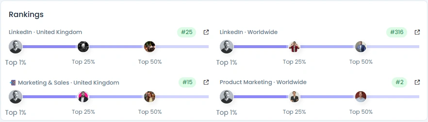 Richard has grown his following steadily to 92K+ professionals, with a healthy monthly growth rate of around 1,500 followers. His Influence Score of 8,181 points puts him in the top 1% on LinkedIn in the UK, ranked #15 in Marketing & Sales nationally and #2 worldwide in Product Marketing. His posts regularly drive thousands of impressions, with standout content reaching 6K+ engagements.