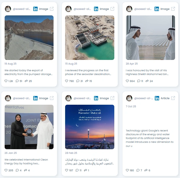 He is one of the most influential voices shaping the future of energy in the UAE. His updates are clear, confident, and always tied to real progress.