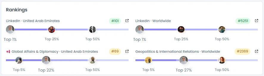 Salama Alawadhi has successfully built a Trusted follower base of over 11,000 professionals, demonstrating consistent and organic growth that matches her career timeline. She currently holds an impressive Influence Score of 5,182 points. Her engagement is top-tier, scoring 88 for Engagement Quality (Natural), which is driven by high-quality comments and less than 20% generic praise. This performance places her in the Top 1% of creators on LinkedIn in the UAE and Worldwide, making her a highly influential voice in the global Geopolitics and Diplomacy landscape.