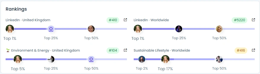 LinkedIn is her home base with ~27K followers and steady organic growth. Influence Score sits around 6,015 pts with good engagement. She posts about 23 times per month, keeping the feed fresh without fluff. Growth trends positive at +1.51% as more product and sustainability teams tune in.