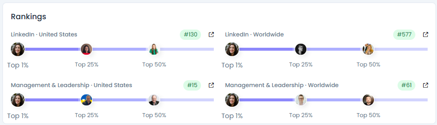 Sherri holds an Influence Score of 90.7/100, putting her in the top 1% of LinkedIn creators both in the U.S. and globally. She ranks #130 in the U.S. and #577 worldwide on LinkedIn. In the niche of Management & Leadership, she’s ranked #15 in the U.S. and #61 globally—clearly dominating her professional category.