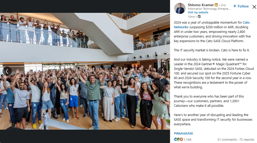 People listen to Shlomo because he speaks from experience. His content is clear, data-driven, and never superficial. Whether he’s announcing funding rounds, addressing industry rumors, or analyzing cybersecurity market shifts, his posts read like insider briefings. Followers trust him because he simplifies complex ideas while keeping a sharp focus on what truly matters: real-world security outcomes.