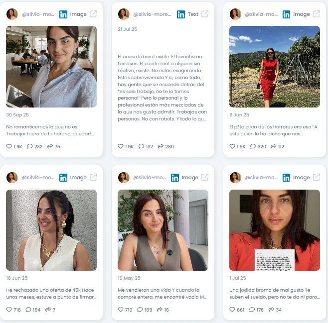 Silvia Moreno Portillo is a Spanish career coach and HR expert focused on job search strategies and organizational wellbeing. She started by decoding hiring signals and soon grew into a go-to voice on culture, boundaries, and fair leadership. Her posts weave lived experience with practical HR frameworks. She publishes short stories about discrimination, favoritism, pregnancy, and toxic practices and shows how to respond. The tone is direct, empathetic, and backed by tools that candidates can copy. She positions herself as the coach who protects people while teaching them how hiring really works.