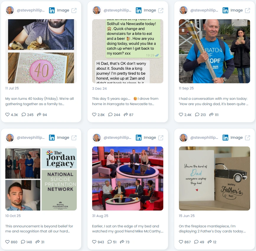 Steve’s following has grown steadily from 57,000 to over 63,000 followers, supported by an Influence Score of 7,515 points. His engagement quality is exceptional, with 92% genuine audience interaction rooted in meaningful dialogue. He ranks in the Top 1% of LinkedIn creators in the UK and within the Top 10% of Mental Health voices worldwide. His posts frequently receive thousands of reactions and comments from both individuals and professionals moved by his message.