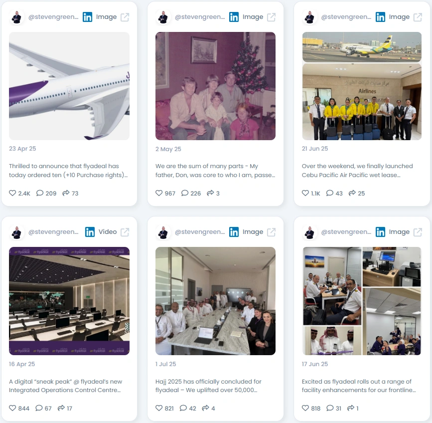 Steven Greenway brings fresh energy to global aviation. As CEO of flyadeal, he’s leading one of Saudi Arabia’s fastest-growing airlines through innovation, technology, and culture. His presence on LinkedIn reflects that same mix of business insight and humanity, blending corporate updates with personal reflections that make leadership feel real.