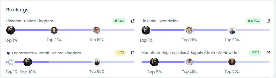 Stuart holds an Influence Score of 5,916 points, placing him in the top 1% of LinkedIn creators in the UK and among the top 5% in Manufacturing, Logistics & Supply Chain worldwide. His follower base has grown from 21K to 28K over two years, supported by steady engagement and daily visibility. His posts often reach thousands, with standout interactions on team achievements, awards, and leadership reflections. His Engagement Quality score of 82 shows an active and loyal professional audience that values substance over flash.