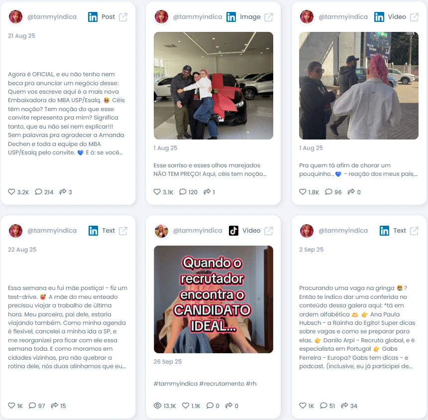 Tammy’s orbit pulls in hiring managers, tech founders, and platform partners. You’ll spot LinkedIn executives, Web Summit voices, global recruiters, Substack writers, and Brazil’s creator-operators who amplify her playbooks. The mix spans education, fintech, and SaaS, which gives her audience cross-border visibility. It also means her advice reflects what decision makers actually want.