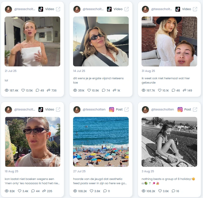 Tess is a cultural marketing strategist and the founder of For You Agency in the Netherlands. She built her reputation by translating fast moving internet signals into brand stories people want to share. Early in her career she earned a Forbes 30 Under 30 nod, then expanded into agency leadership and authoring a book. On stage, she teaches teams how to decode TikTok, community behavior, and brand personas. In the feed, she posts lessons from real campaigns and behind the scenes decisions. She positions herself as the point where creators, brands, and culture align.