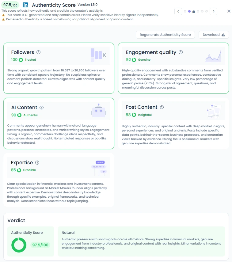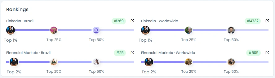 Thiago’s following grew from 16,587 to 26,956 on LinkedIn, with consistent engagement from verified professionals and market enthusiasts. His Influence Score of 8,000 points ranks him in the Top 1% on LinkedIn Brazil and the Top 2% in Financial Markets globally. Market Makers’ podcast and YouTube content regularly generate thousands of views and comments, making it one of Brazil’s go-to destinations for financial education. His engagement quality score of 92/100 shows just how much his insights resonate with audiences looking for clarity and confidence in an unpredictable market.