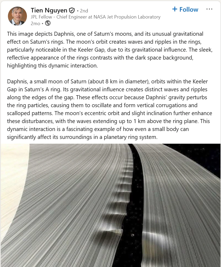 Tien’s network is anchored in some of the most respected institutions in science and technology. As part of NASA’s JPL community, he connects with engineers, astrophysicists, researchers, and academics shaping the future of space exploration. His presence on LinkedIn links him to leading voices from universities, research centers, and tech firms invested in aerospace innovation. That ecosystem gives his posts both credibility and reach within the global scientific conversation.