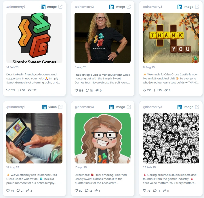 Tina Merry has become a warm and unmistakable voice in the gaming world. Her posts feel like conversations with a friend who happens to be a seasoned founder and industry leader.
