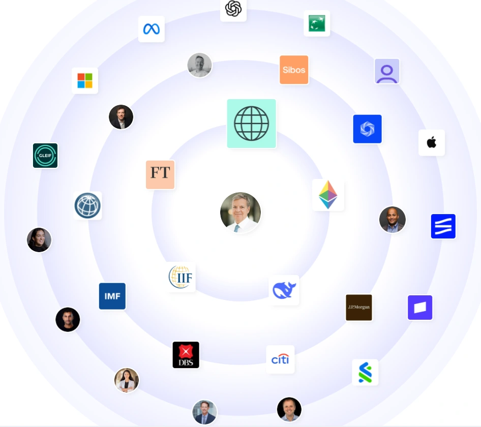 Tom’s professional network is a who’s who of the global finance and tech scene. His connections span institutions like J.P. Morgan, Citi, IMF, World Bank, BNP Paribas, and DBS, along with major players in the tech space like Microsoft, Apple, Meta, and OpenAI. He also collaborates with organizations such as Sibos, FT, and IIF, reflecting his central role in bridging financial policy and technological advancement. Tom’s network mirrors his influence. He is trusted by innovators, regulators, and leaders shaping the digital economy.