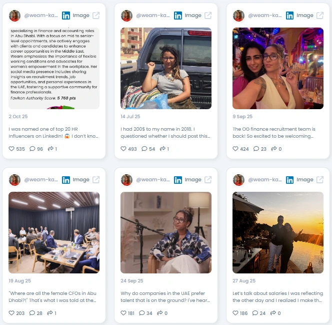 With a Favikon Authenticity Score of 83.5/100, Weam’s profile stands out for its human warmth and industry credibility. Her content feels lived-in, from personal reflections on her past to conversations about gender equality and professional growth. She shares moments that go beyond job titles, inviting her audience to see the person behind the recruiter. This honesty builds trust and keeps her followers coming back for more.