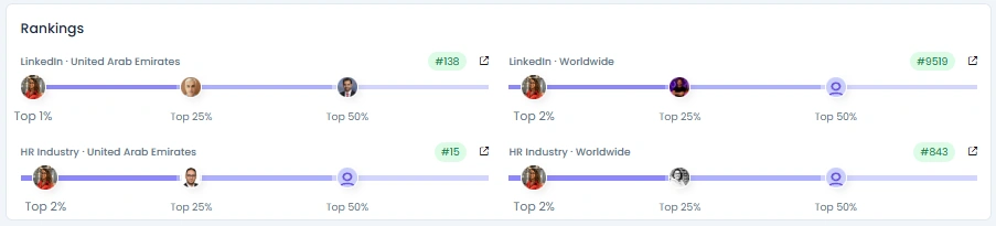 Weam’s audience has grown naturally from 13,748 to 27,826 followers, reflecting consistent engagement and community trust. Her Favikon Influence Score sits at 6,515 points, placing her in the top 1% of LinkedIn creators in the UAE and top 2% in the HR industry. With an engagement quality rated 78/100 and content scores above 85 across AI detection and expertise, her posts combine reach with real impact, remaining data-driven, heartfelt, and consistently insightful.