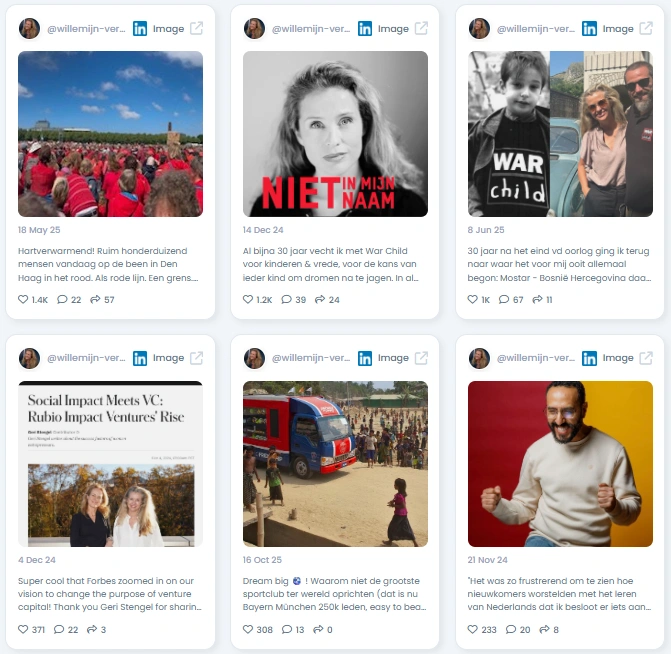 Because Willemijn doesn’t sugarcoat reality. Her posts feel grounded and direct equal parts storytelling and reflection. She opens up about the long road from humanitarian aid to impact investing and often ties her insights to real-world lessons. People engage because her content sounds like experience speaking, not branding. Her followers see someone who’s been on the frontlines, not just in meeting rooms.