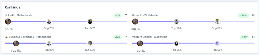 With a following of over 28,000 on LinkedIn, Willemijn ranks among the top 1% of creators in the Netherlands and the top 3% globally in Venture Capital. Her engagement rate stays strong and consistent, with thoughtful comments rather than vanity likes. She maintains a steady posting rhythm that mixes thought leadership with moments of activism, reflecting both passion and professionalism. Her influence score sits at 6,321 points, solidifying her as one of Europe’s most trusted voices in the impact space.