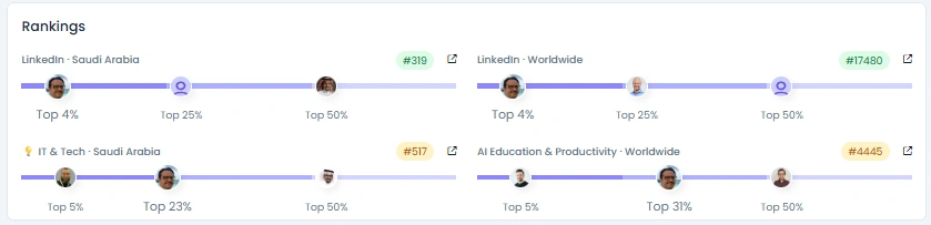 His network includes leading AI researchers, regional tech leaders, global NLP experts, and government innovation groups. Industry names such as Stanford AI Lab researchers, HUMAIN leadership teams, and regulatory figures in Saudi Arabia frequently interact with his work. These connections give him credibility in both global research communities and national AI strategy circles. His network reinforces a profile of influence based on expertise rather than hype.