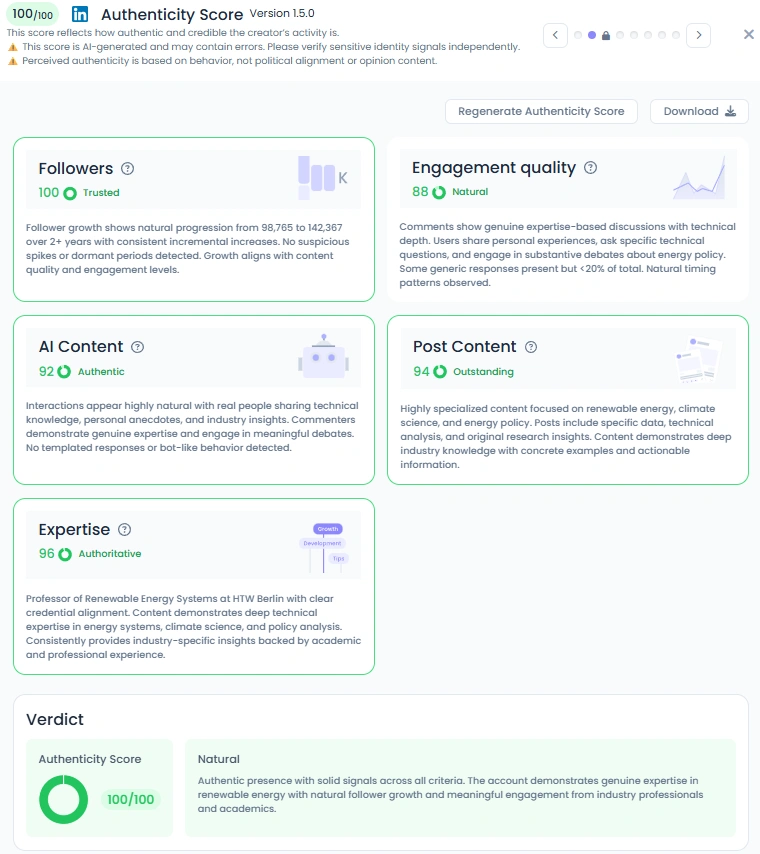 Mit einem Favikon Authenticity Score von 100/100 bringt Volker Fachwissen und Barrierefreiheit in Einklang. Er präsentiert nicht nur Grafiken und Zahlen, er verleiht seinen Inhalten Persönlichkeit, Humor und sogar Satire. Von Memes bis hin zu ausdrucksstarken Videoerklärern zeigen seine Beiträge, dass Autorität nicht trocken sein muss. Die Kombination aus akademischer Genauigkeit und zugänglichem Geschichtenerzählen macht seine Inhalte sowohl glaubwürdig als auch fesselnd.