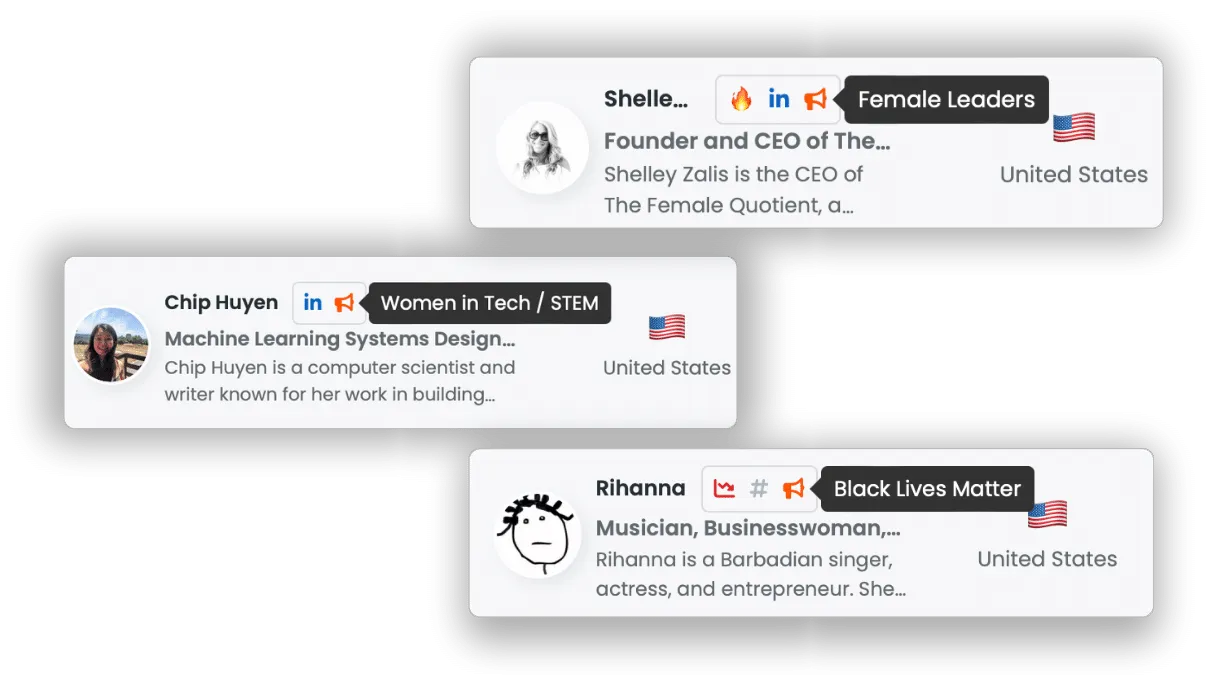 Pinpoint the ideological leanings of creators and their political perspectives. This enables you to discover creators whose aspirations and worldview align with yours and your organization's.