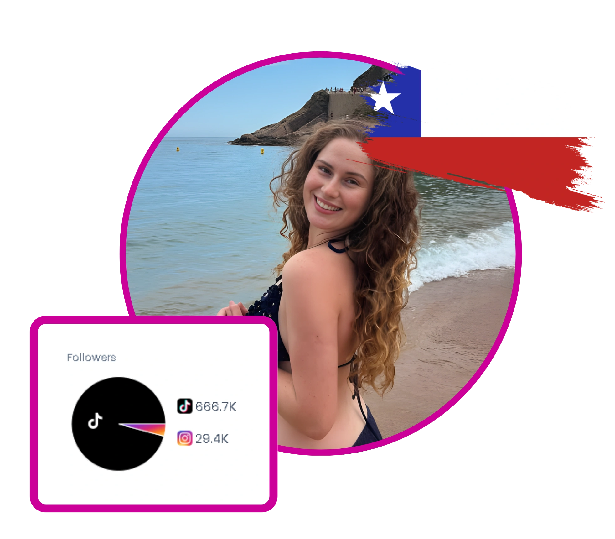 Cata Diaz es una creadora de contenido de belleza y estilo de vida con sede en Santiago, Chile. Comparte tutoriales de maquillaje, consejos de moda y anécdotas personales en plataformas como Instagram y TikTok. Sus publicaciones suelen presentar imágenes vibrantes y atraen a su audiencia con contenido identificable sobre la vida diaria, las tendencias de belleza y las experiencias personales. Cata promueve varias marcas a través de códigos de descuento y colaboraciones, lo que demuestra su influencia en la industria de la belleza.
