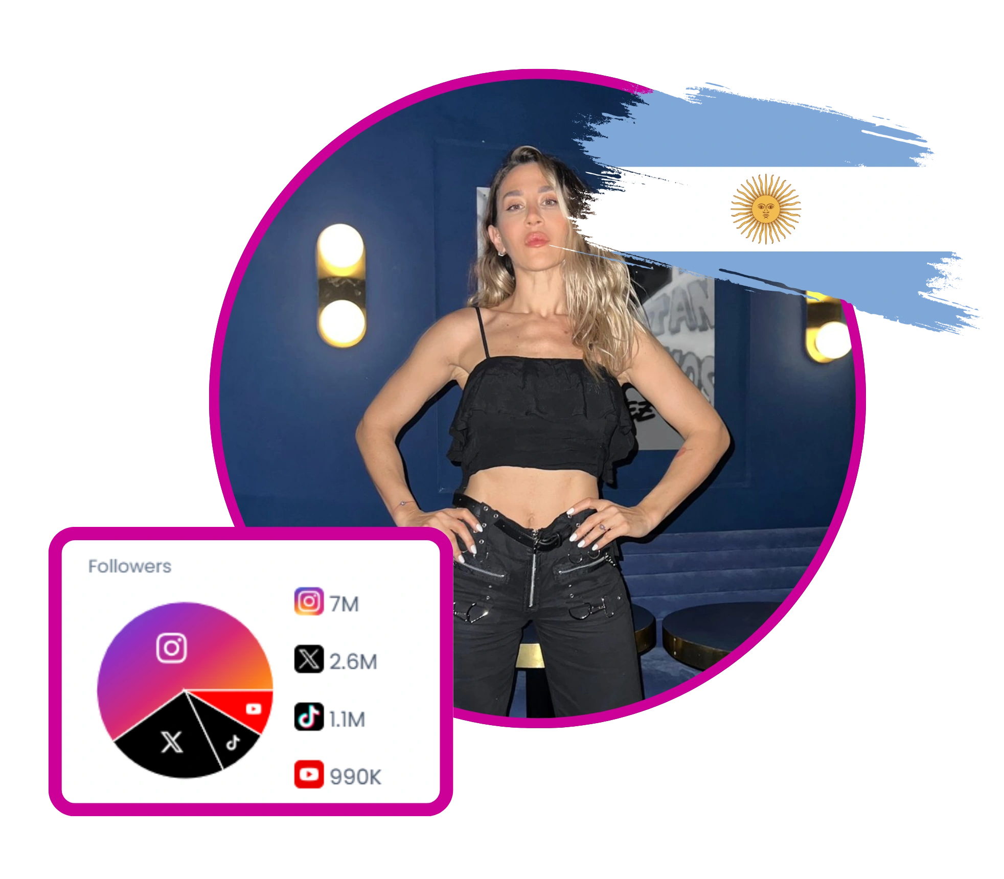 La cantante, compositora e intérprete argentina Jimena Barón, conocida por su personaje de La Cobra, combina música con historias familiares íntimas en Instagram, TikTok y YouTube. Su contenido se centra en los hitos profesionales, los viajes y la vida con sus hijos, y retrata a una figura pública sincera y con la que se puede identificar que comparte el proceso creativo, las giras y los momentos personales que dan forma a su imagen pública.