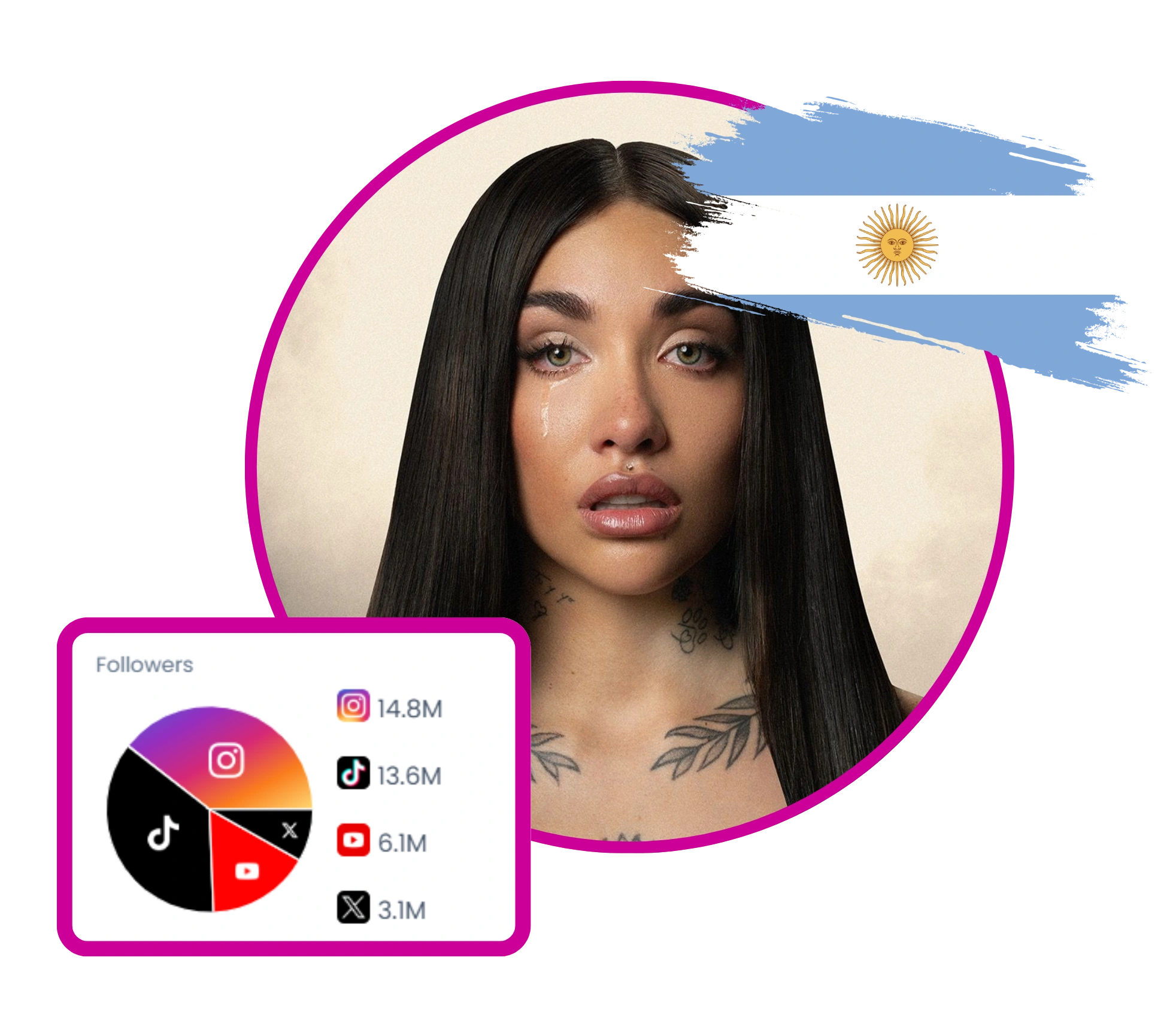 La Joaqui es una destacada artista y compositora argentina conocida por su importante impacto en los géneros musicales turreo y RKT. Con más de 500 millones de reproducciones, ha conseguido un seguimiento masivo a través de éxitos como «Butakera» y «Muñecas». Su reciente lanzamiento en solitario, «San Turrona», también ha conseguido mucha atención en TikTok. La atractiva presencia de La Joaqui en las redes sociales muestra su viaje artístico, sus reflexiones personales y su conexión con los fanáticos, lo que la convierte en una figura destacada de la música latina contemporánea.