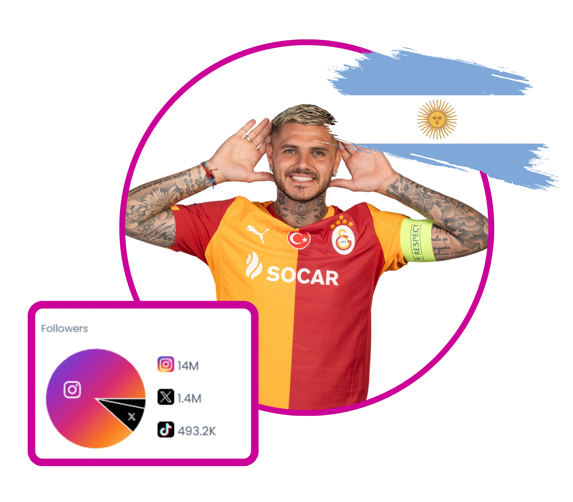 Mauro Icardi es un jugador de fútbol profesional conocido por su carrera en los principales clubes europeos, incluido el Galatasaray. Su presencia en las redes sociales muestra principalmente sus logros deportivos, su vida personal y la relación con su pareja. Con frecuencia comparte momentos de sus entrenamientos, partidos y celebraciones, y a menudo destaca su dedicación al deporte y a su equipo. Además, publica sobre su vida personal, incluyendo momentos románticos con su pareja, estilo de vida y viajes. Su contenido refleja una mezcla de orgullo profesional y narración personal, y atrae a los fanáticos del fútbol y a aquellos interesados en su vida fuera del campo.