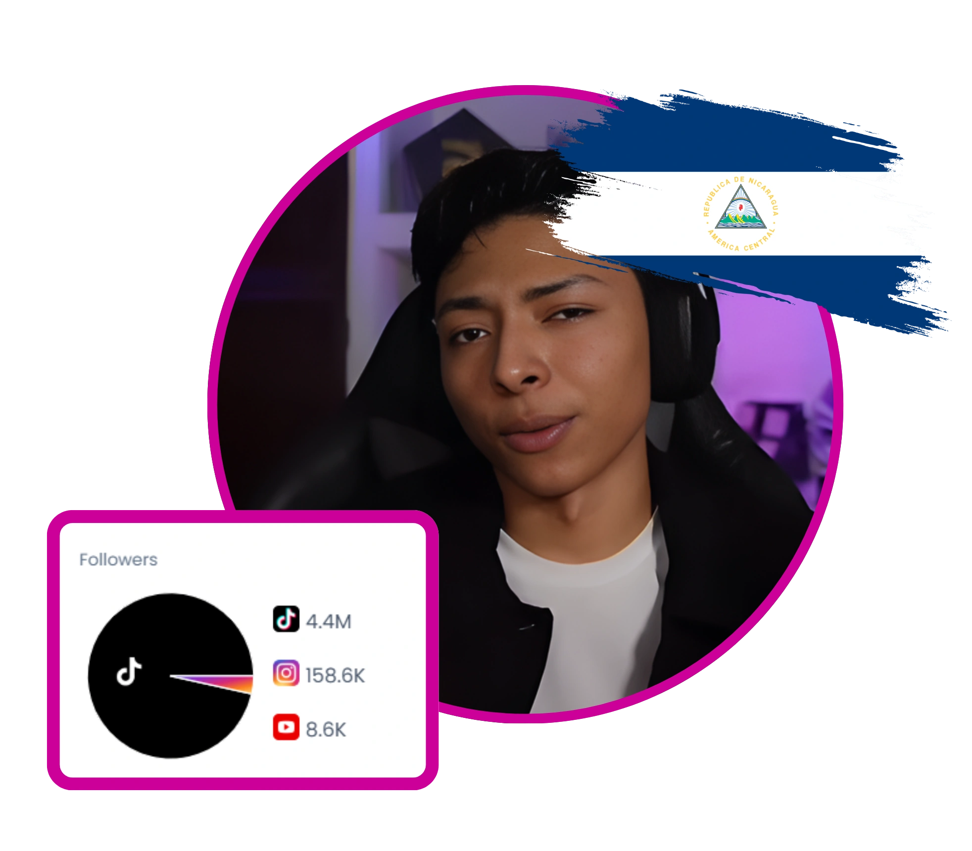 Un popular creador de contenido de Nicaragua, conocido por sus memes humorísticos y parodias relacionadas con los videojuegos, particularmente con Free Fire. Con una cantidad significativa de seguidores en TikTok (3,2 millones) y publicaciones atractivas en Instagram y YouTube, se centra en experiencias de juego con las que se pueda relacionar y en contenido cómico. Sus publicaciones suelen incluir referencias culturales e interacciones alegres con su audiencia, lo que demuestra una fuerte conexión con sus raíces nicaragüenses.