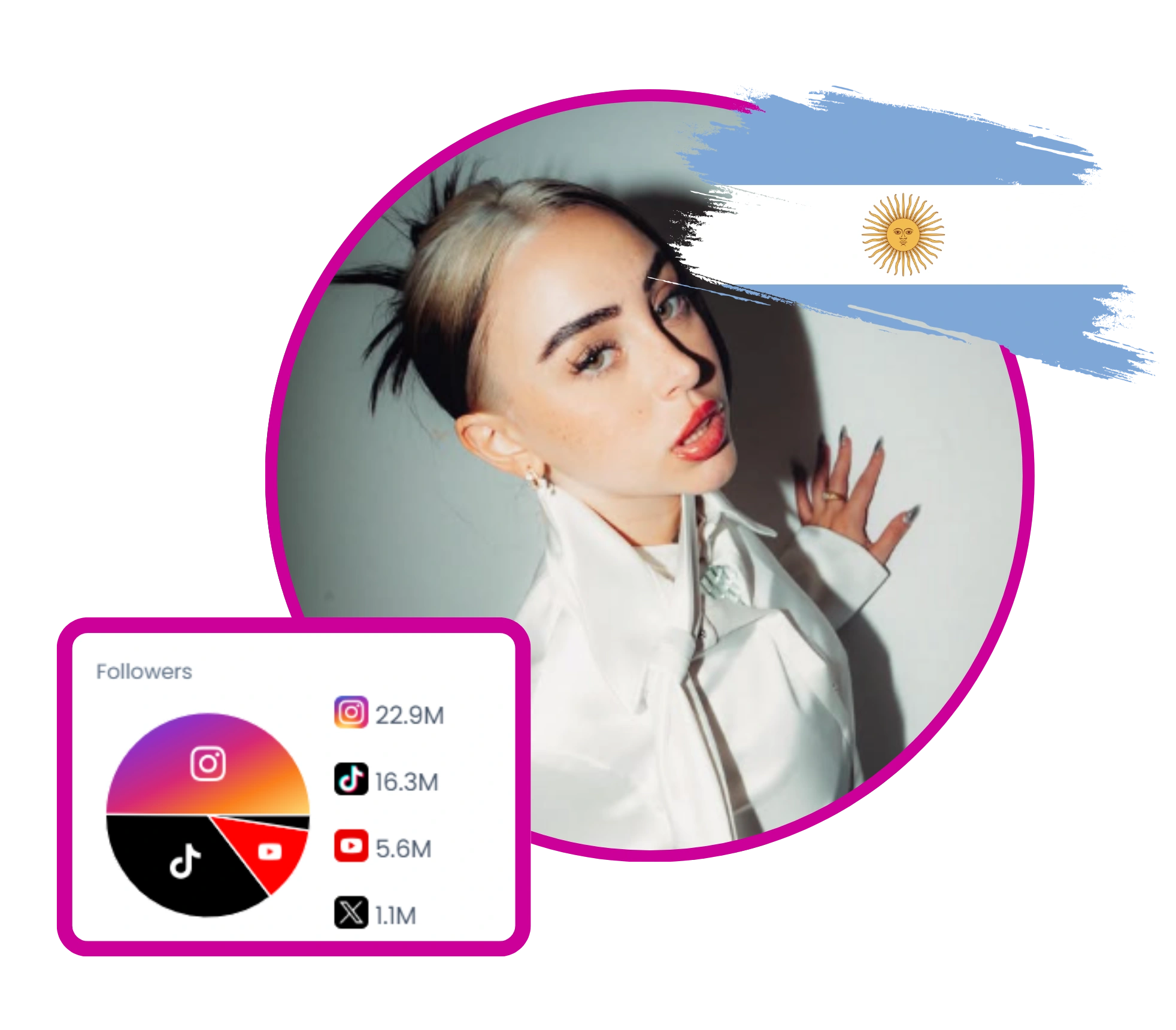 Lali es una destacada cantautora y actriz argentina, reconocida como una de las figuras más influyentes de la música latinoamericana. Con más de 20 años de carrera, ha colaborado con artistas mundiales como Thalía, Will.i.am y Becky G, e interpretó el himno nacional argentino en la final de la Copa Mundial de la FIFA Catar 2022. Conocida por su valentía artística y su evolución constante, Lali ha lanzado varios álbumes, incluidos «LALI» y «NO VAYAS A ATENDER CUANDO EL DEMONIO LLAMA», que han logrado un éxito comercial significativo. Hizo historia como la primera artista femenina argentina en agotar las entradas del Estadio Vélez Sársfield, embarcándose en una gira mundial que atrajo a más de 500.000 asistentes. Su contenido gira principalmente en torno a lanzamientos musicales, presentaciones en vivo y campañas promocionales para sus álbumes y conciertos.