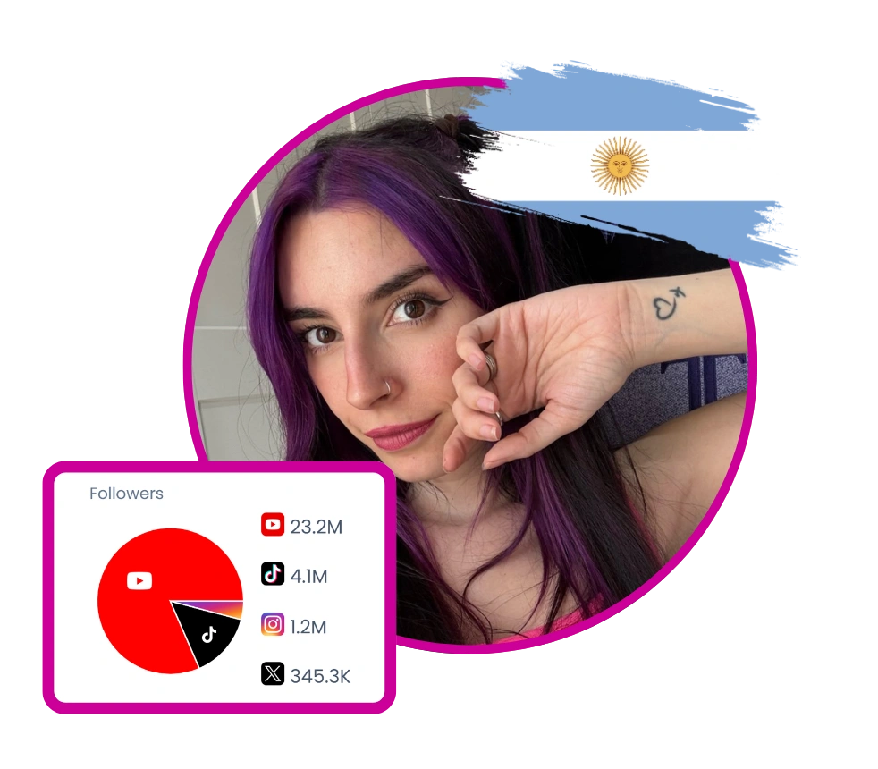 Nati Uboldi es una destacada creadora de contenido argentina conocida por sus videos diarios en YouTube e Instagram, donde atrae a su audiencia con sketches humorísticos y contenido identificable. Con un gran número de seguidores, a menudo comparte experiencias personales, desafíos e ideas sobre su estilo de vida, incluidos sus logros y premios recientes. Su contenido atrae a un grupo demográfico más joven y se centra en el entretenimiento y las interacciones alegres.