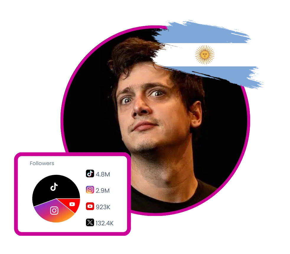 Luciano Mellera es un comediante conocido por sus atractivas actuaciones y contenido humorístico en las plataformas de redes sociales. Promueve activamente sus espectáculos e interactúa con los fanáticos, compartiendo actualizaciones e información sobre entradas. Sus publicaciones en TikTok e Instagram suelen incluir sketches cómicos y contenido relacionado, mostrando su estilo y personalidad únicos. Con un gran número de seguidores, ha establecido una fuerte presencia en la escena de la comedia, particularmente en América Latina.